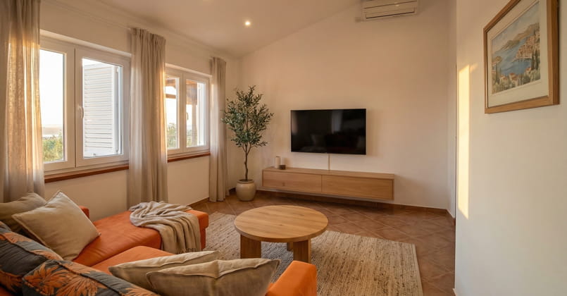 Kromě dalších 2 ložnic se zde rozhodně najde místo pro každého: velká kuchyň, kde můžete společně vařit, obývací pokoj s útulnou pohovkou a televizí pro odpočinkové večery. Odtud je také přímý vstup na sluneční terasu.